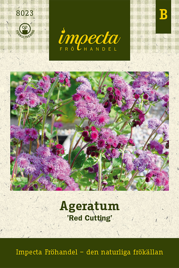 Blåflockel 'Red Cutting' (Ageratum houstonianum 'Red Cutting') är en iögonfallande sort med purpurröda knoppar som öppnar sig till ljust rödvioletta blommor med ljusare borst. Växten har ett upprätt, buskigt växtsätt som gör den idealisk för blomlådor och buketter. Blommorna kan även torkas och användas i arrangemang, vilket ger långvarig skönhet både i och utanför trädgården.