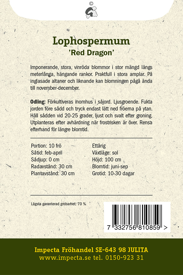 Lophospermum Red Dragon, Lejongapsranka Red Dragon