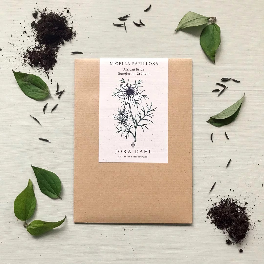 African bride är en härlig växt med ett sirligt bladverk och vita blommor med svartlila frökapslar och ståndare. Passar fint både i rabatten och buketten!