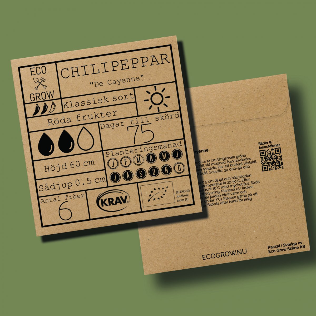 Chilipeppar De Cayenne - är en produktiv chilipeppar som vi ofta ser torkad och mald till en het krydda. Kan dock användas både färska, inlagda eller torkade. Frukterna blir ca 12 cm långa och går från gröna till röda under sin mognadsfas med en scoville på 30 000 - 50 000 scoville.