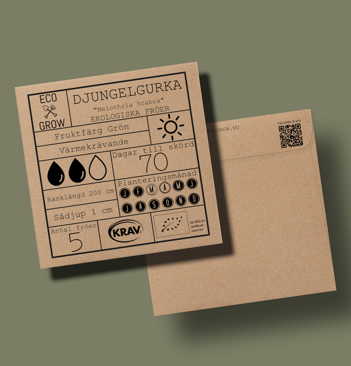 Djungelgurka Melothria Scabra - är en exotisk sydamerikansk klängväxt med stor växtkraft. Är snabbväxande och ger mängder av små ovala frukter på 3-5 cm. Frukterna har ett grönt spräckligt skal i olika nyanser och smaken är aningen syrlig. Används som snacks i sallader, salsor eller inläggningar.