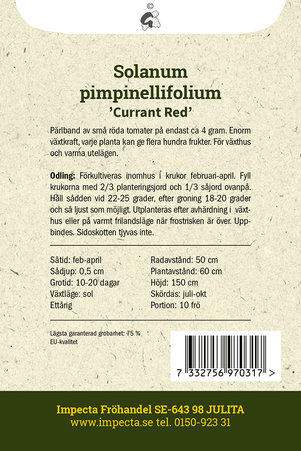 Produktegenskaper: | Solanum lycopersicum Currant Red |