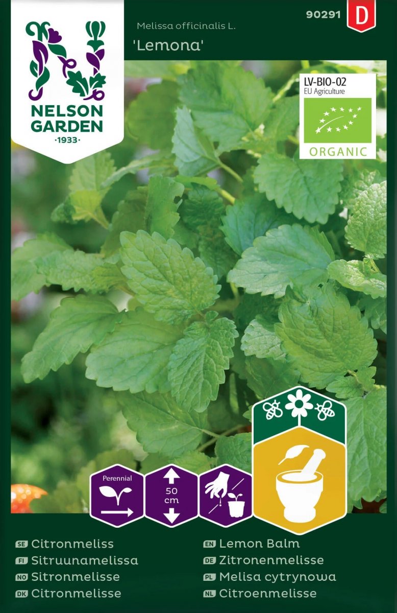Ekologiskt frö. Citronmeliss är en dekorativ kryddväxt med vackert grönt bladverk och vita blomspiror. Odla i kruka eller i perennrabatten. Skörda de citrondoftande bladen efter hand. Använd till smaksättning och dekoration.