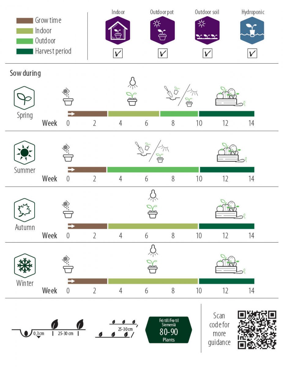 Börja förodla under vintern för blad tidigt på våren. Plantorna går sedan att plantera ut efter frost.