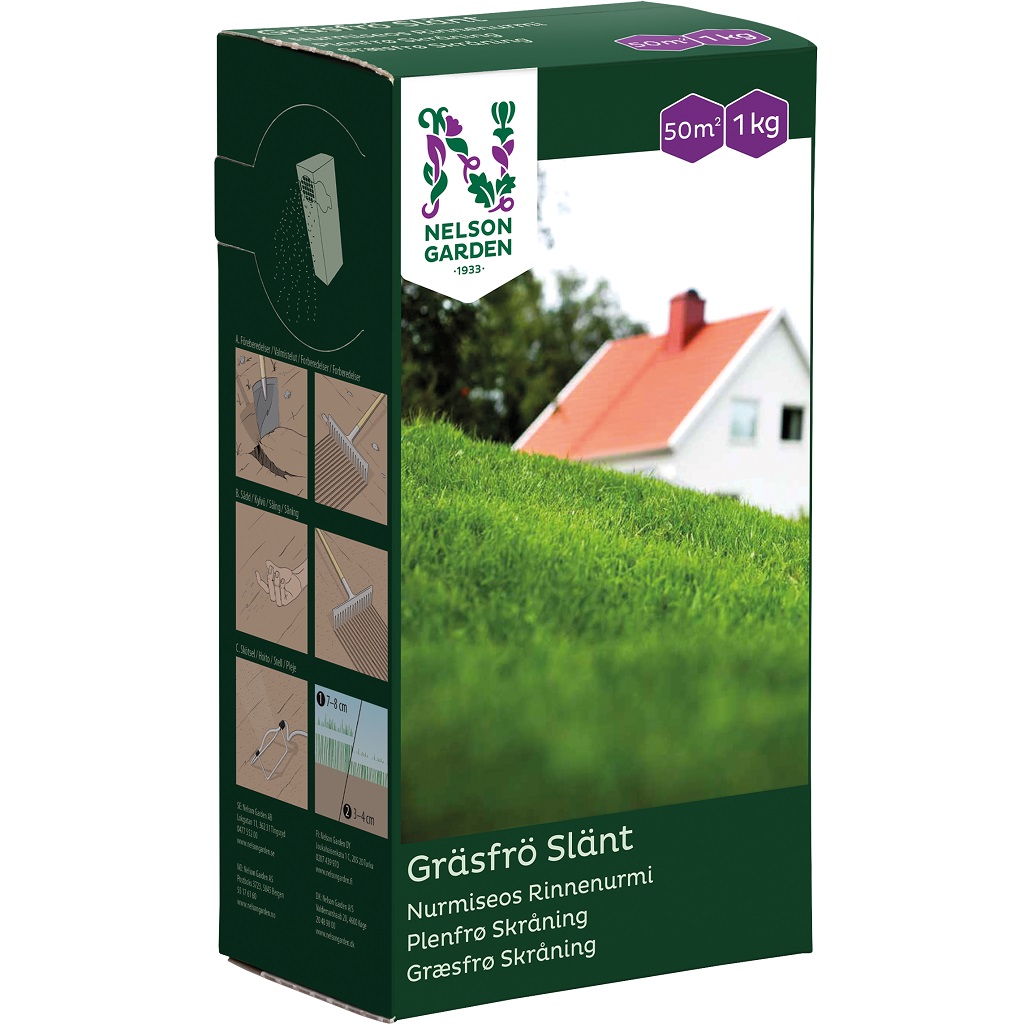 Vår gräsfröblandning för sluttningar och lutande partier. Den tål torka och täcker ytan ganska snabbt. Skickar ut underjordiska utlöpare som håller jorden på plats. Den här gräsfröblandningen kan sås så snart jordtemperaturen är minst 8 °C. Vid sådd på våren är vattningen viktig. Vid sådd på sensommaren är luften fuktig och konkurrensen från ogräset mindre.