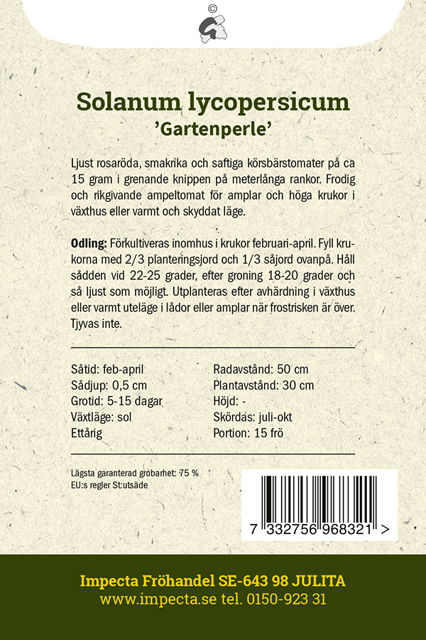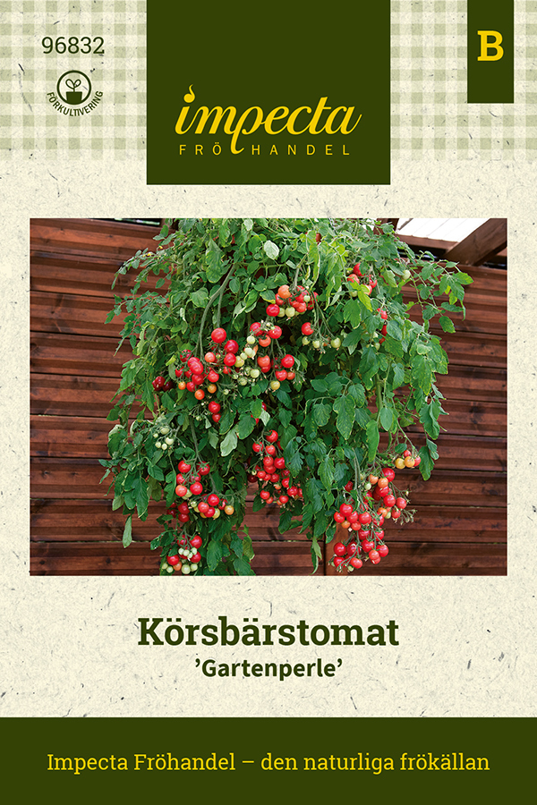 Rosaröda, saftiga körsbärstomater på meterlånga rankor. Frodig, smakfull och rikgivande för amplar och höga krukor i växthus eller varmt och skyddat läge.