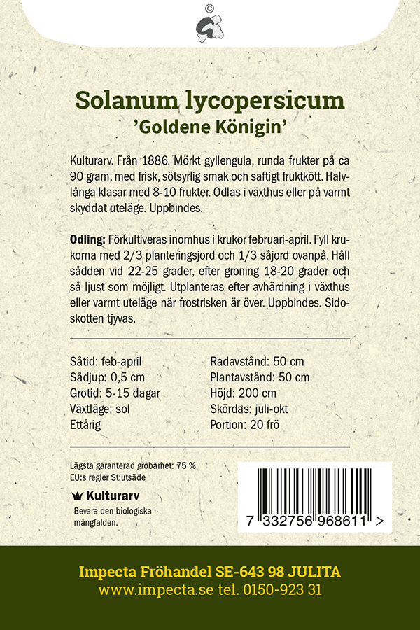 Produktegenskaper: | Solanum lycopersicum Goldene Königin |
