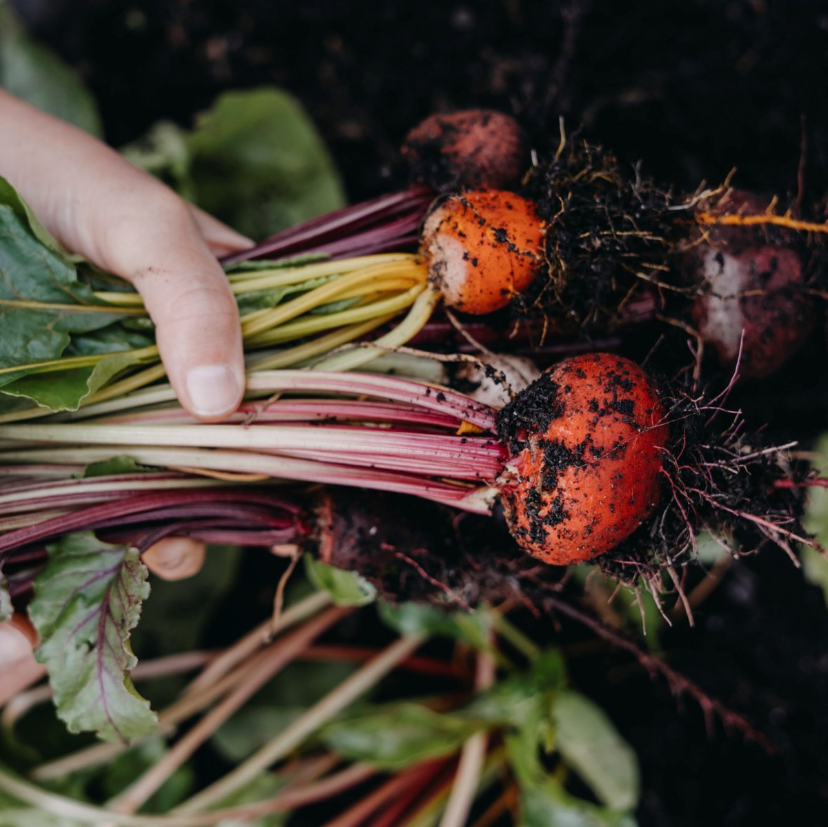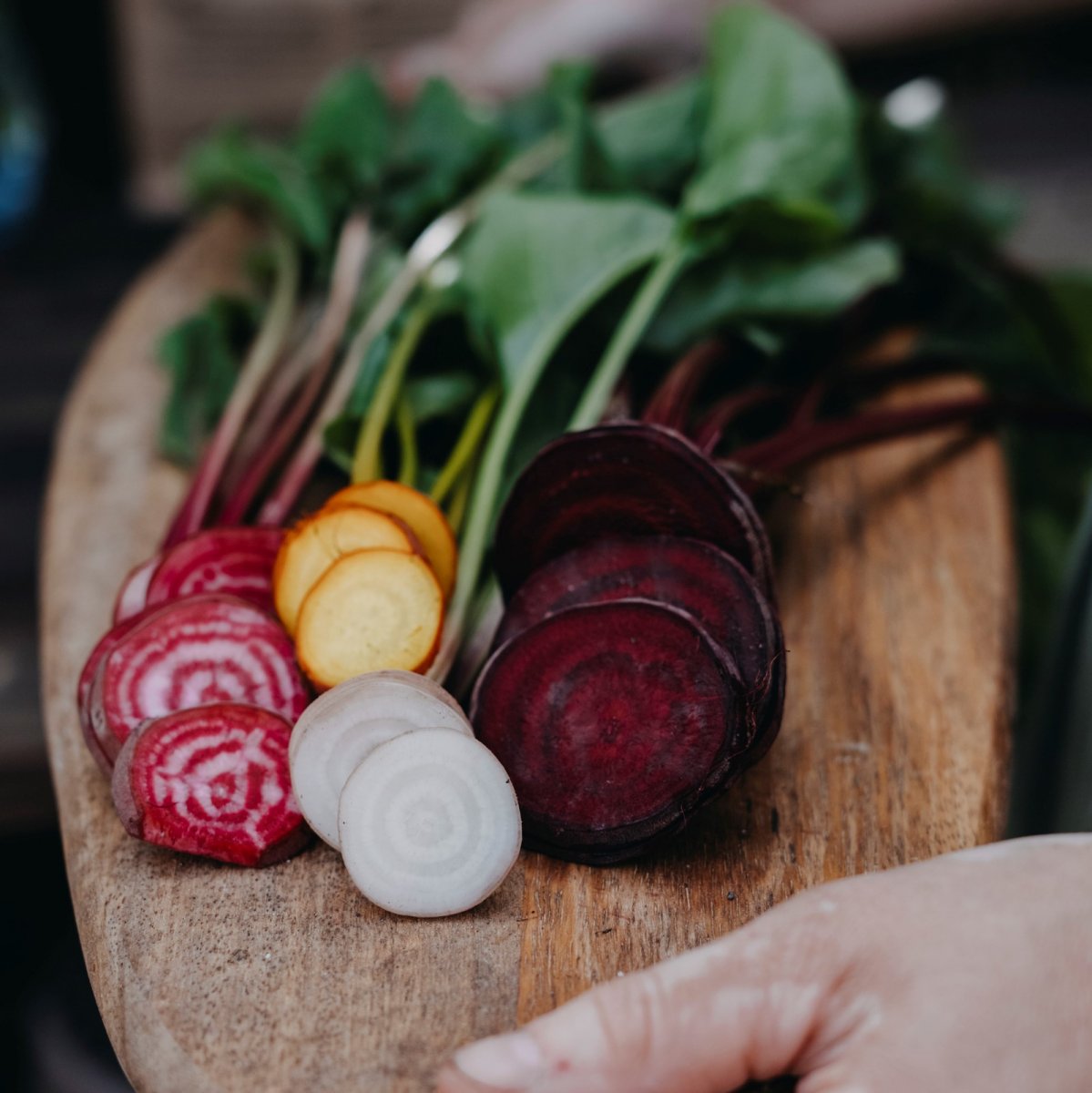 Mix av rödbetor i gult, vitt, rött och polkagrisrandigt. Så inte för tidigt, vid frost kan plantan gå i blom.