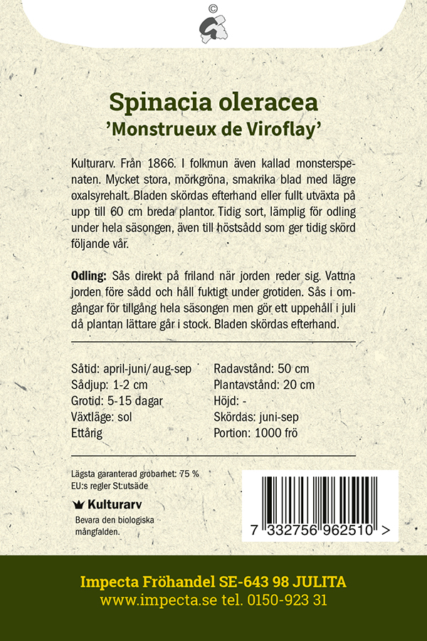 Spinacia oleracea Monstreux de Viroflay