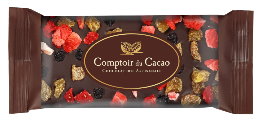 Mörk Choklad med torkad jordgubb, blåbär & aprikos