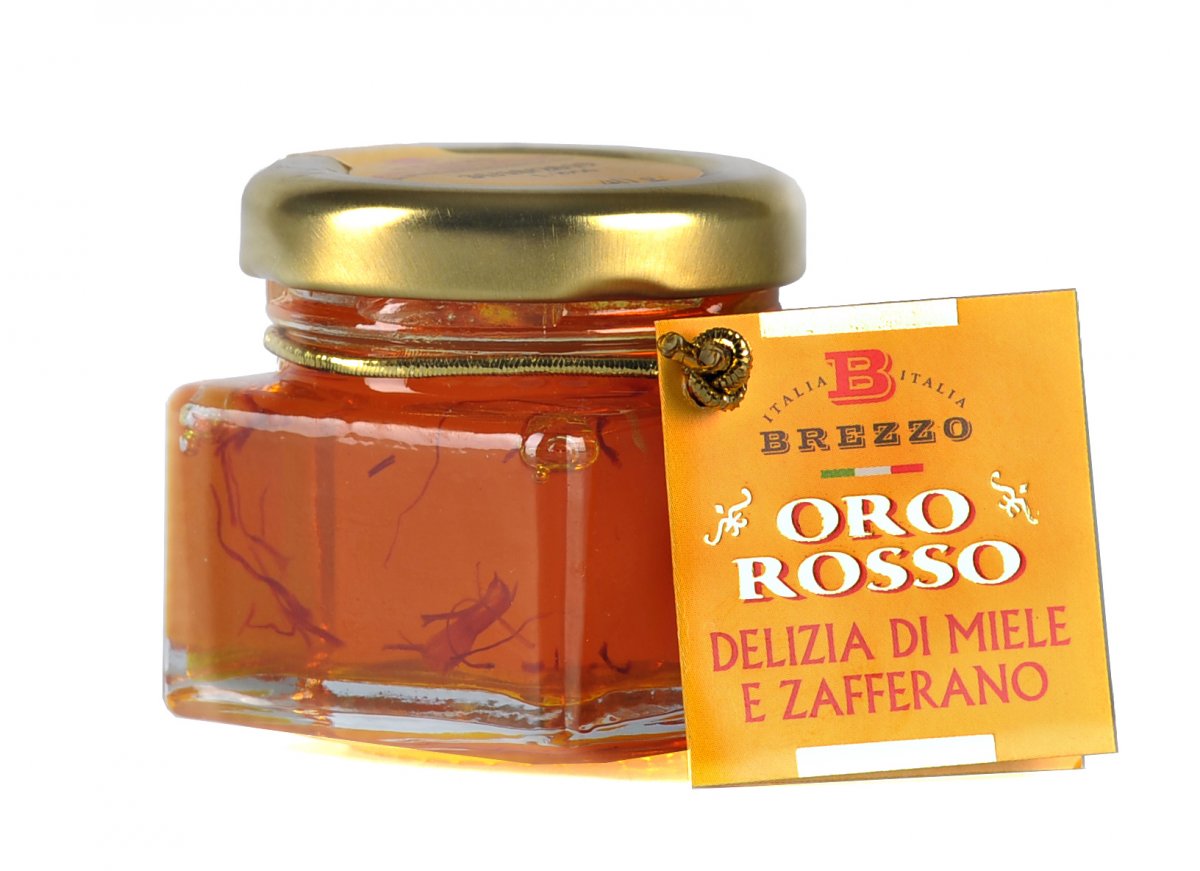 Saffranshonung från blomman av "Crocus sativus L".Den rubinröda färgen, den delikata aromen och den karaktäristiska smaken gör den till en honung av extraordinär kvalitet. Passar till förrätter, huvudrätter, desserter och till alla typer av ost.