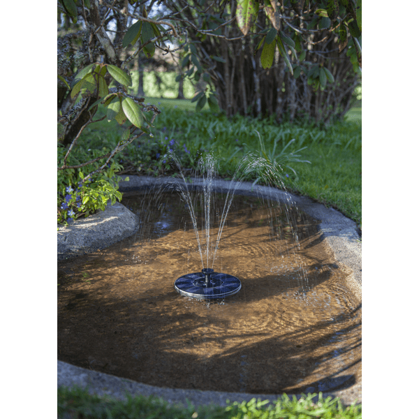 Skapa liv och rörelse i trädgården med denna solcellsdrivna fontän. Den passar utmärkt i fågelbad eller mindre dammar och drivs helt av solenergi – smidigt, energisnålt och utan behov av elanslutning.
