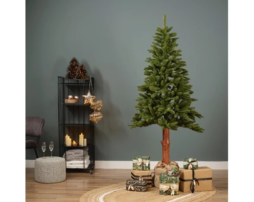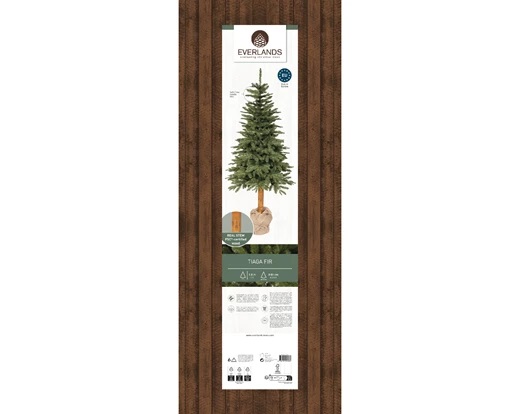 Här är granen med en smalare form med sina tjockare grenar och en stam och fot som inte vill gömmas utan skall visas. En snygg detalj till skillnad från de mer traditionella konstgranarna med sina metallfötter. Tiaga har naturlika grenar med barren i plast. Den levereras i två delar som är uppmärkta och är enkel att sätta ihop. Grenarna kallas för ’folded' vilket betyder att man vecklar ut dem själv.