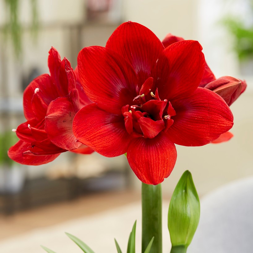 Mörkt röda dubbla blommor. Mycket fin blomma att ha till jul!