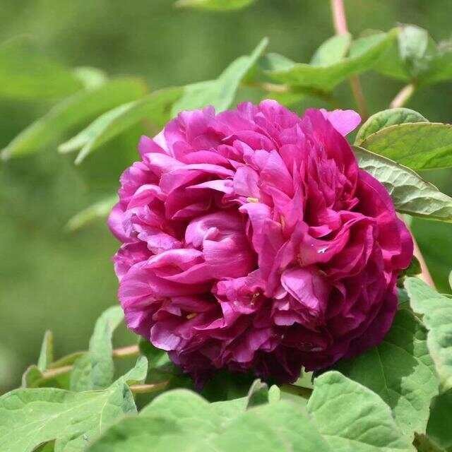 Paeonia suffruticosa ‘Garnet-Red Light on the Desk’ (Shou An Hong) är en klassisk kinesisk trädpion med stora, halvfyllda till fyllda blommor i djupt granatrött – rik på färg, historia och symbolik. Den intensiva rödtonen har ett silkeslikt djup, och blommorna kan nå upp till 20 cm i diameter. Sorten blommar i maj och har ett kraftigt, upprätt växtsätt med dekorativt flikigt bladverk som håller sig vackert långt efter blomning. Namnet anspelar på hur blommans färg liknas vid det röda sken som sprider sig över skrivbordet från en antik lampa – ett tecken på visdom, fred och välgång i traditionell kinesisk kultur. Trivs i sol till lätt halvskugga i näringsrik, väldränerad jord med inslag av kalk. Höjd ca 120–150 cm. En djup och dramatisk pion för dig som söker både skönhet och kulturarv i trädgården.