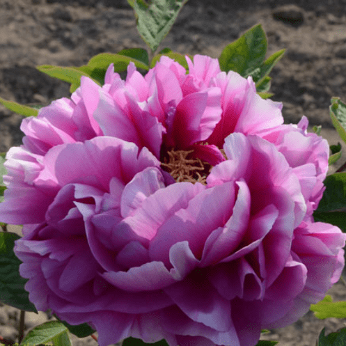 Paeonia suffruticosa ‘Rhymes’ (Di Yun) är en sofistikerad trädpion med stora, halvfyllda till fyllda blommor i mild lavendelrosa till ljust violett ton – med ett drömskt och stilla uttryck. Kronbladen är tunna, silkeslena och lätt vågade, vilket förstärker blomningens luftiga karaktär. Färgen kan skifta beroende på ljus och mognad, från mjukt lila till nästan silverrosa. Namnet ‘Di Yun’ betyder ungefär "flöjtens klang", och anspelar på pionens graciösa och poetiska väsen. Sorten blommar i maj och har ett upprätt, kraftigt växtsätt med friskt flikigt bladverk. Trivs i sol till lätt skugga i näringsrik, väldränerad jord med inslag av kalk. Höjd ca 120–140 cm. En drömsk och unik pion med en subtil färgpalett – perfekt för trädgårdar med romantisk eller asiatisk känsla.