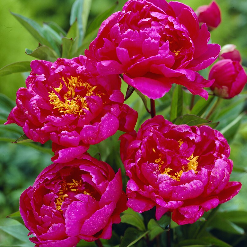 Paeonia lactiflora 'Monsieur Martin Cahuzac' är en storslagen pion med stora, fyllda blommor i en djup, mörkröd till vinröd nyans som ger ett elegant och dramatiskt uttryck i trädgården. Blommorna har en svag men behaglig doft och en klassisk, rundad form som verkligen fångar blickar. Den robusta plantan har ett frodigt, mörkgrönt bladverk som skapar en vacker kontrast till blomningen. 'Monsieur Martin Cahuzac' trivs bäst i sol till lätt halvskugga och i väldränerad, näringsrik jord, och är en pålitlig perenn som återkommer år efter år.