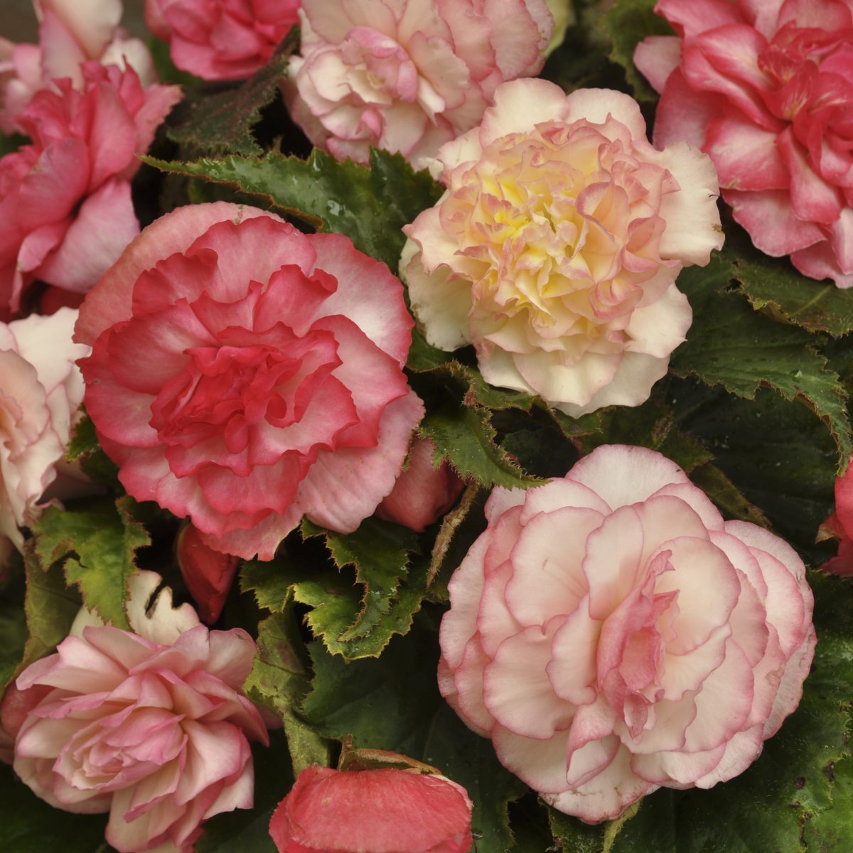 Begonia ‘Wummi Marmorata’ är en elegant och rikblommande knölbegonia med vita blommor som är vackert marmorerade i rosa toner. Den dekorativa färgteckningen ger ett livfullt och exklusivt uttryck som gör sorten till ett riktigt blickfång i krukor, balkonglådor och sommarplanteringar. Blommorna är fyllda och sitter rikligt över plantan under hela säsongen. Med sitt kompakta och välförgrenade växtsätt blir plantan cirka 20–30 cm hög och passar utmärkt i halvskugga till skugga, där den fortsätter blomma fint även under varma sommardagar. Begonia ‘Wummi Marmorata’ är ett perfekt val för dig som vill ha en lättskött sommarblomma med lång blomning och ett romantiskt, tvåfärgat färgspel.