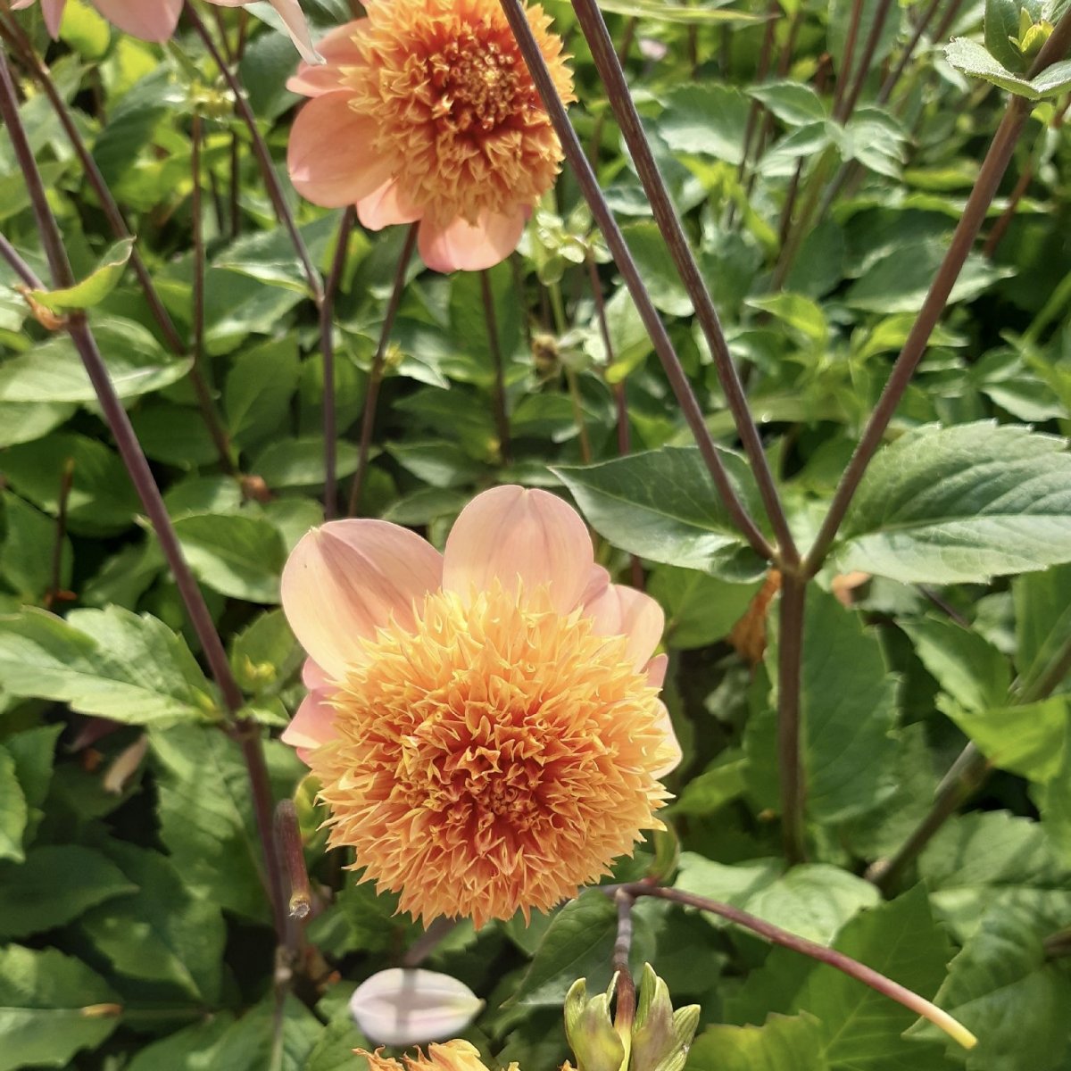 Dahlia ’Sandia Brocade’ – aprikos-orange anemondahlia för rabatt och snitt