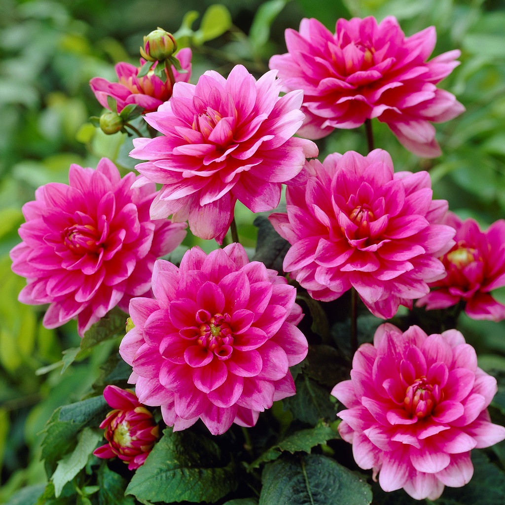 En lågväxande dekorativ dahlia som får blommor i en intensiv färg som sträcker sig från purpurrosa till lila. Lämpar sig såväl till rabatten som till urnan.