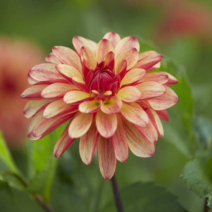 Denna dahlia har en aprikos framsida och en rosaröd undersida.