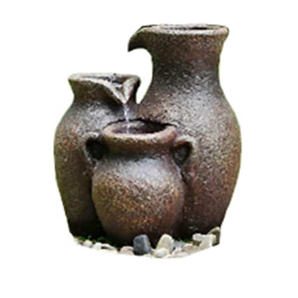 Detta dekorset i form av tre krukor kan bli en vacker och rofylld installation i en trädgård.