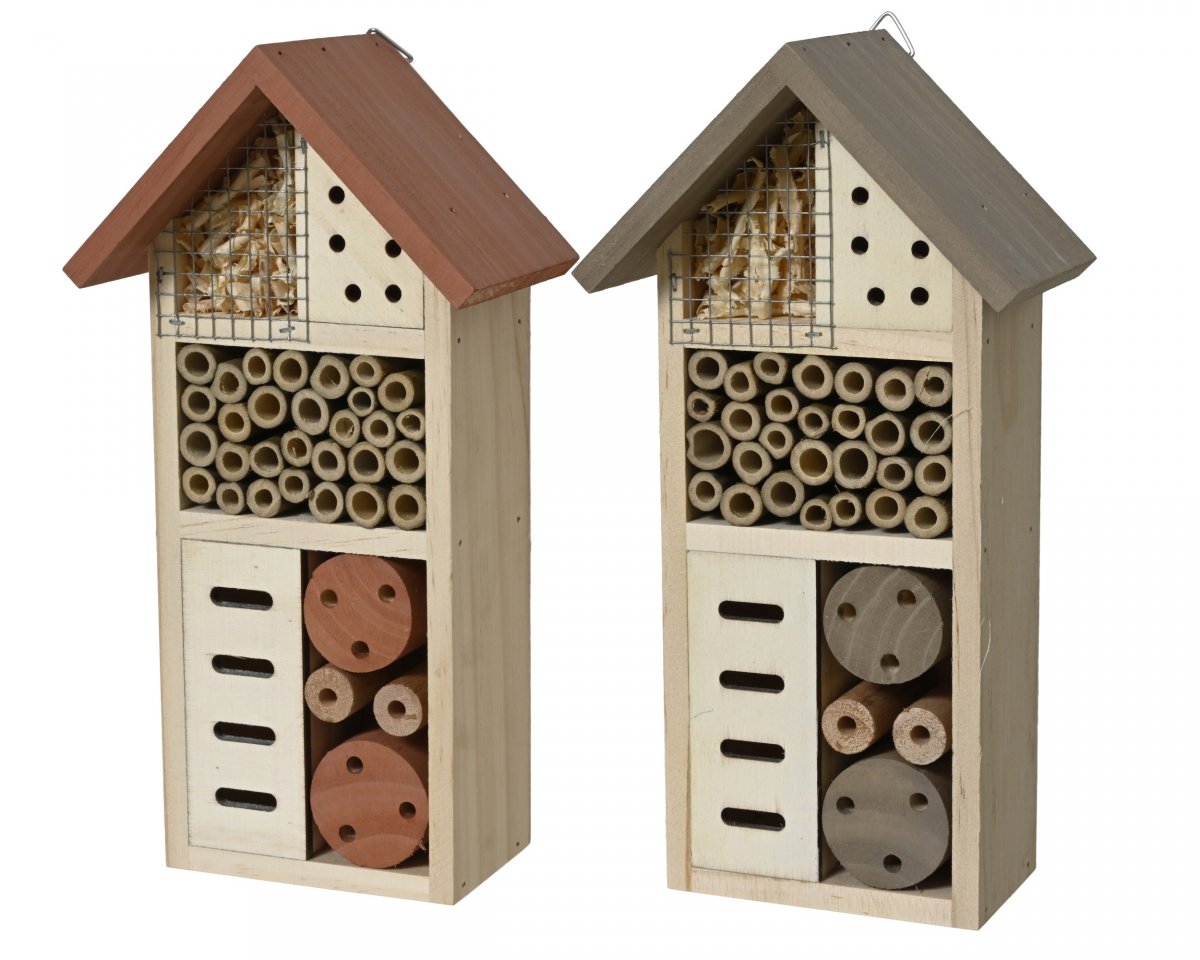 Ett mångsidigt insektshus med flera typer av rum som ger skydd åt nyttodjur i trädgården. Med plats för bland annat solitärbin, nyckelpigor och andra pollinatörer hjälper det här huset till att skapa en levande och biologiskt mångfaldig uteplats.