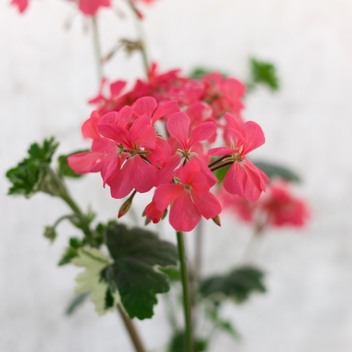 Pelargon ’Platinum’ är en underbar och kraftigt växande pelargon som med tiden blir relativt stor. Den får enkla, laxrosa blommor som svävar över ett fantastiskt variegerat bladverk i mörkt grönt och kritvitt, vilket ger ett mycket elegant och iögonfallande uttryck.