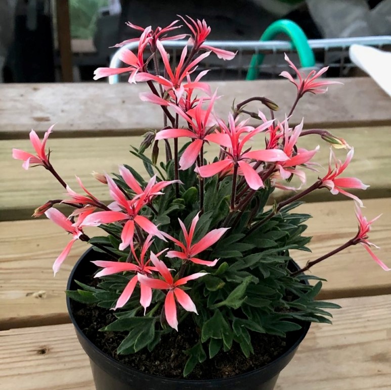 Med enkla, spetsiga laxrosa blommar denna microminiatyr, långsamtväxande.