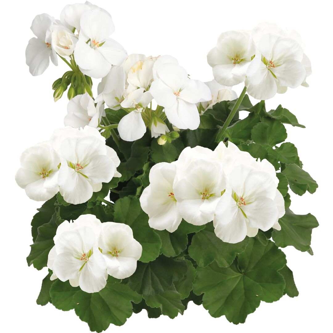 Denna pelargon får blommor i en elegant vit färg och ett grönt bladverk!