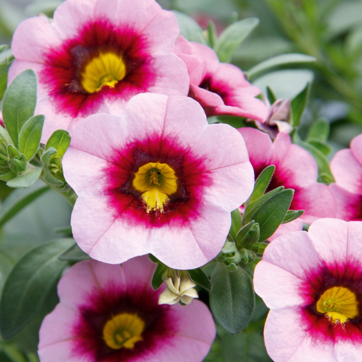 Denna sort får vackra blommor med rosa kanter och en gul mitt med en mörkrosa nästan röd ring runt.