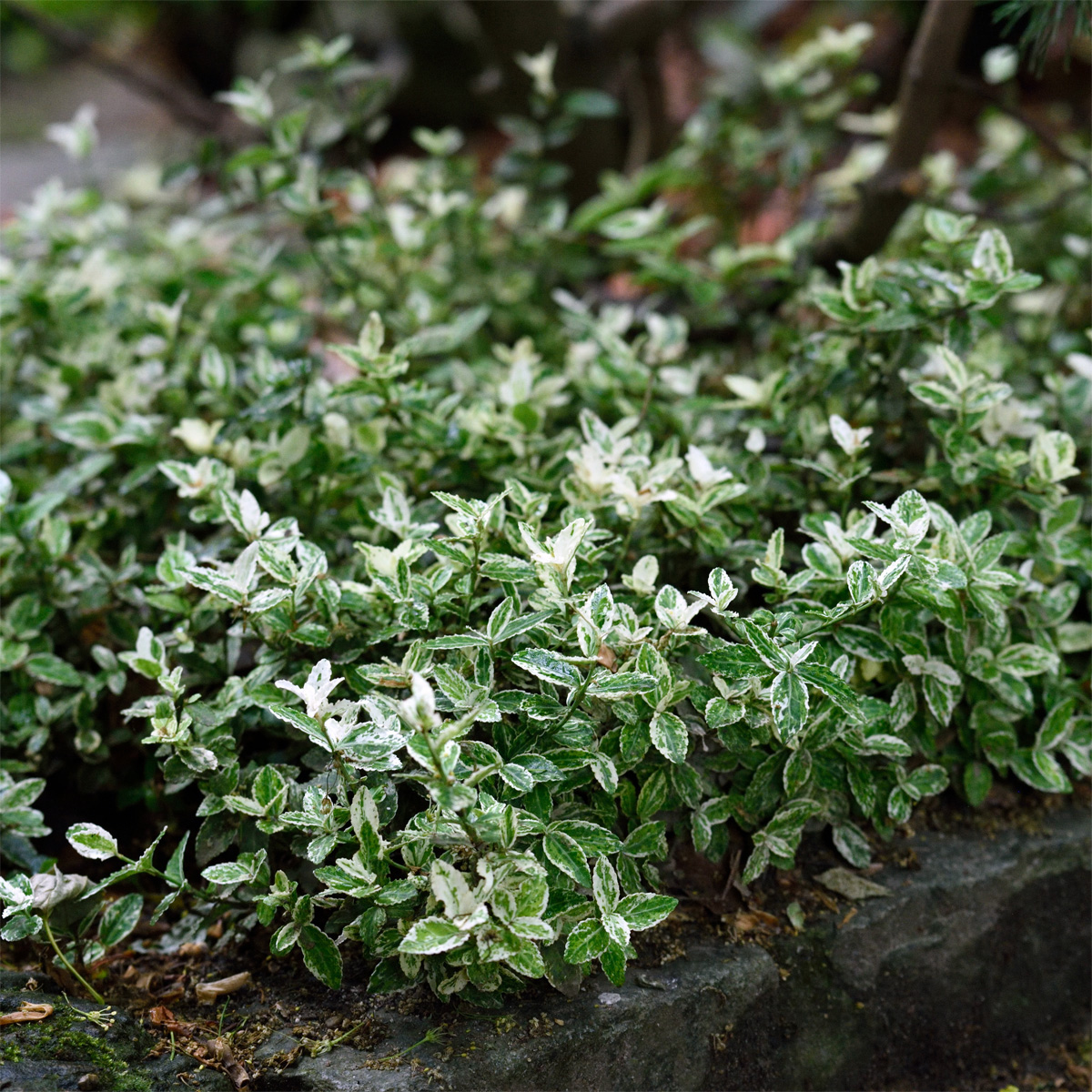 Klätterbenved 'Harlequin' (Euonymus fortunei 'Harlequin') är en lågväxande, vintergrön buske som utmärker sig med sitt dekorativa, brokiga bladverk. Med ett mattbildande och ibland klättrande växtsätt når den en höjd på cirka 30 cm och kan breda ut sig upp till 80 cm, vilket gör den idealisk som marktäckare, kantväxt eller för plantering vid murar och spaljéer. Bladen är små, ovala och glänsande med en grön bas och vita fläckar, vilket skapar ett livfullt mönster. Nya skott är nästan helt vita, vilket ger en fräsch kontrast, och under kalla vintermånader kan bladen skifta till rosa eller rödaktiga toner, vilket tillför ytterligare färg till trädgården.