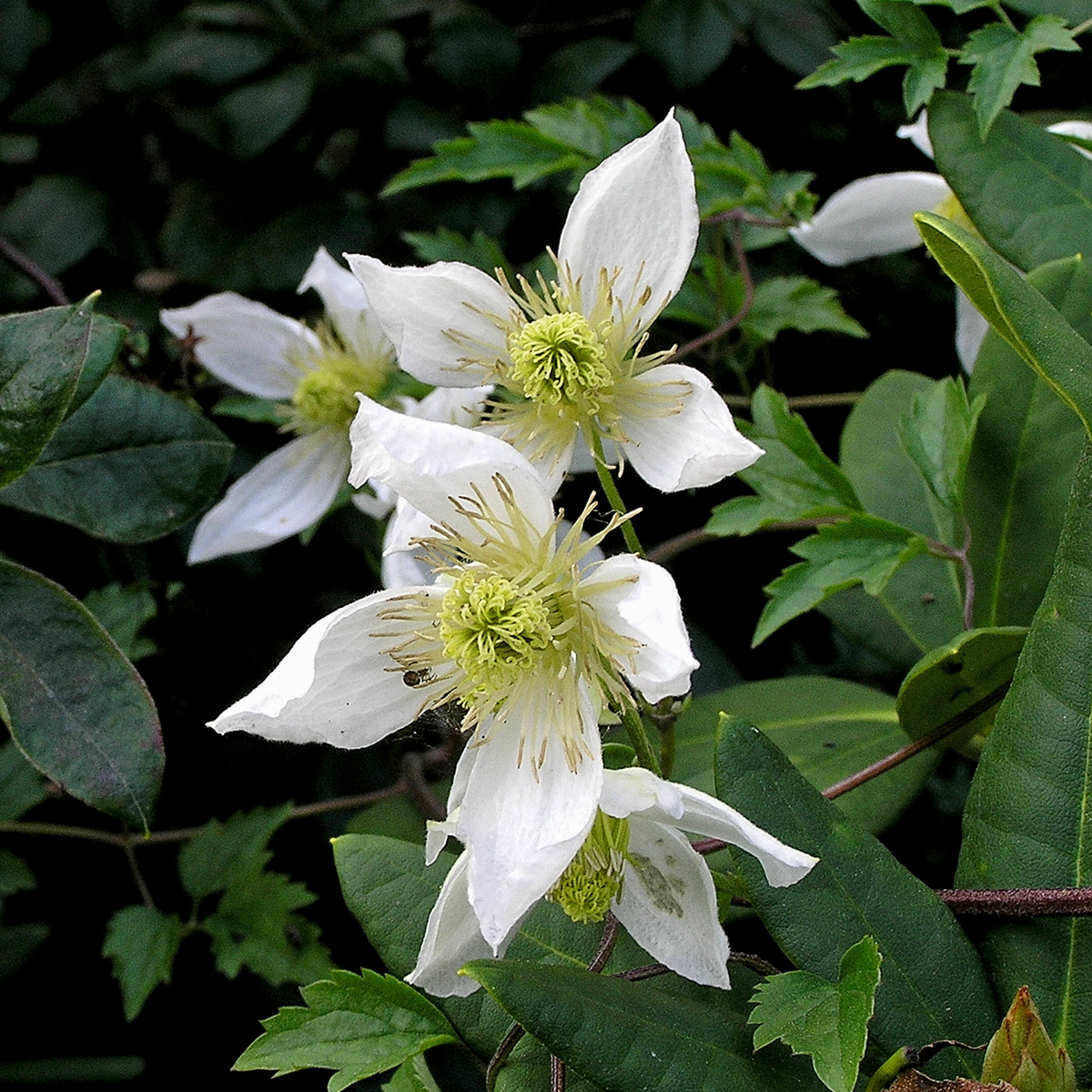 Clematis tangutica 'Anita', även känd som Gullklematis, är en slående klätterväxt som pryder trädgården med sina vackra, hängande, klockformade vita blommor. Blommorna, som mäter omkring 4–5 cm i diameter, framträder rikligt från sensommar till tidig höst och kontrasteras fint mot det mörkgröna bladverket. Efter blomningen bildas dekorativa, silvriga fröställningar som ger ett prydligt inslag långt in på hösten.