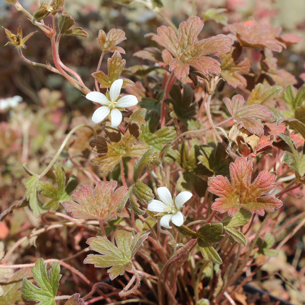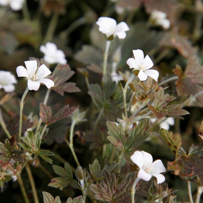 vit, juni-sept, brunröda blad, 20cm, sol, halvsk.AB