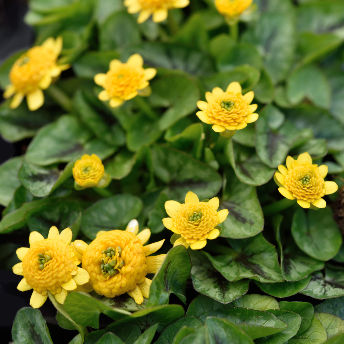 gul, fylld, april-maj, grönrödsilvriga blad, 10cm, sol, sk.B