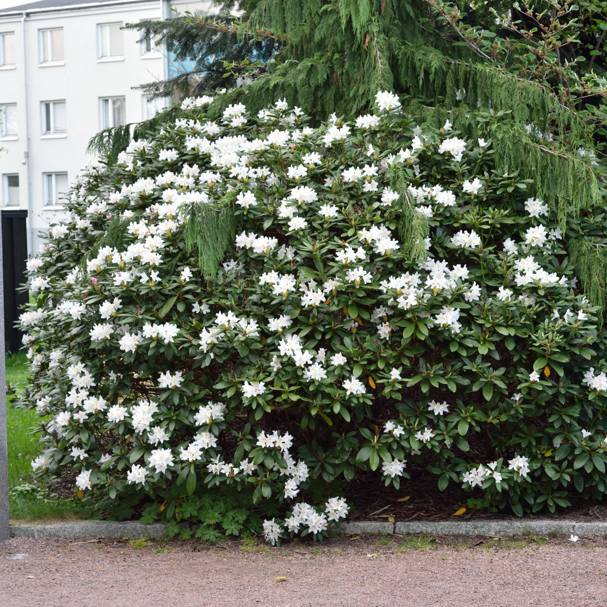 Busken blir 1,5–2 meter hög och har ett tätt, kompakt växtsätt, vilket gör den idealisk för användning som solitär, i grupper eller som en del av häckplanteringar. Den föredrar ett läge i halvskugga till skugga och växer väl i väldränerad jord, även om den klarar kalkrika förhållanden tack vare Inkarho-rotstammen. Den är mycket härdig och lättskött, vilket gör den till ett pålitligt och dekorativt val för många olika typer av trädgårdar. **'Cunningham's White' - Inkarho** är en mångsidig klassiker som kombinerar skönhet och funktionalitet på ett unikt sätt. **'Cunningham's White' - Inkarho** är en del av Inkarho-serien, vilket innebär att den är odlad på kalktolerant rotstock. Detta gör den lättodlad och anpassningsbar till jordar med högre pH-värde, vilket gör den idealisk för trädgårdar där traditionella rododendron kan ha svårt att trivas.