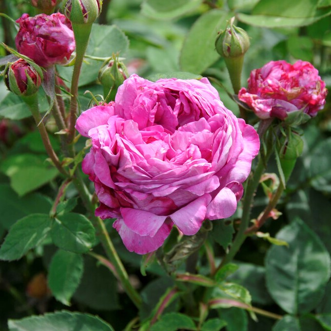 lila nyanser, stora fyllda blo., medelstark doft av ängsviol, taggfri, 1,2-1,5m, juni-okt, sol, halvskugga, anno 1860, zon 1-4.