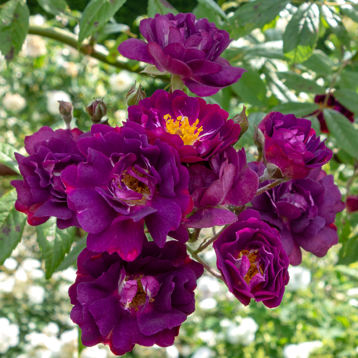 Produktbeskrivning:Rosa Violette är en djupt purpurviolett multiflora-rambler som utmärker sig både genom sin intensiva blomfärg och sin förvånansvärt starka doft, något som är ovanligt för rosor i multiflora-gruppen. Den blommar i enorma klasar och skapar ett kraftfullt färginslag i trädgården under försommaren.